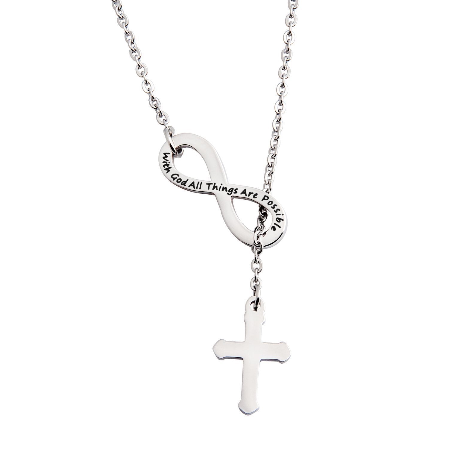 With God All Things are Possible Infinity Cross Necklace Bracelet Religious Jewelry